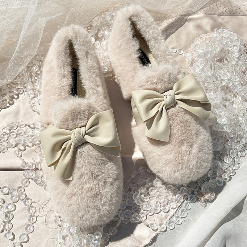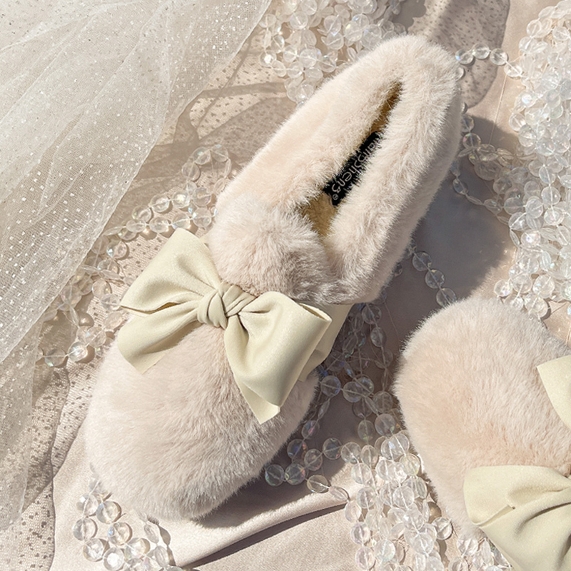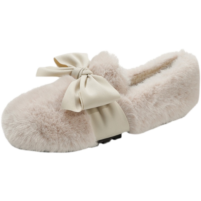 Japan 2021 butterfly knots wool-bean shoes women winter gush rabbit fur flat cotton shoes outwear a foot pedal