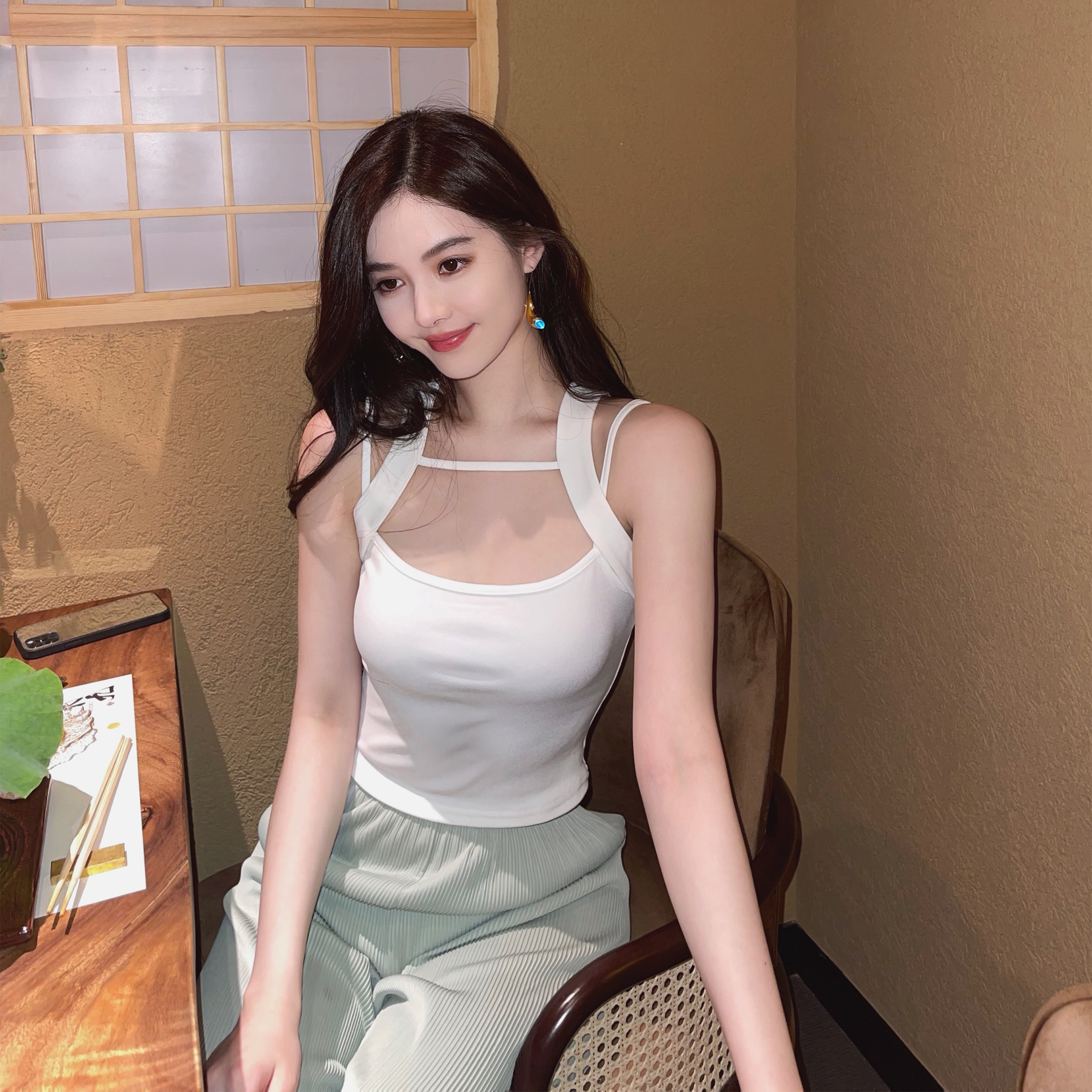 nicky design sense white camisole women's autumn 2022 self-cultivation short style with pure cotton ins tide