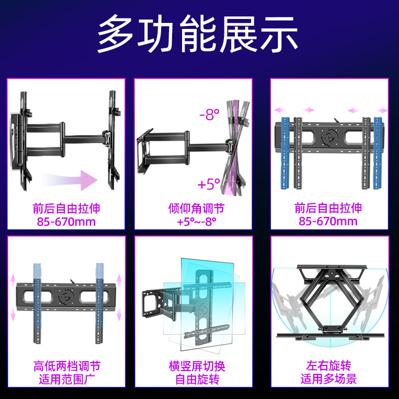 55-90-inch horizontal vertical screen switching flagship 6 arm large load bearing 60KG 40-80 inch reinforced bearing horizontal vertical screen switching telescopic frame can load bearing 50KG 32-43 Ying