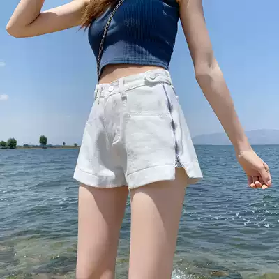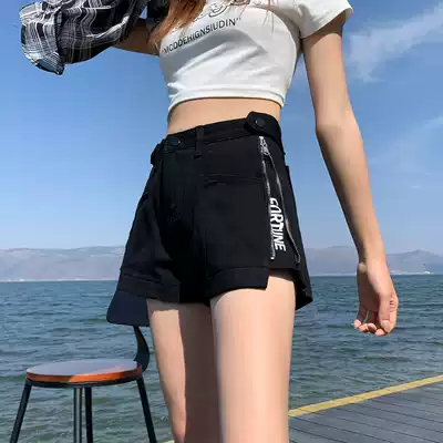 Denim shorts women's casual high waist thin summer a-line three-point wide leg side zipper super hot pants net red tide ins