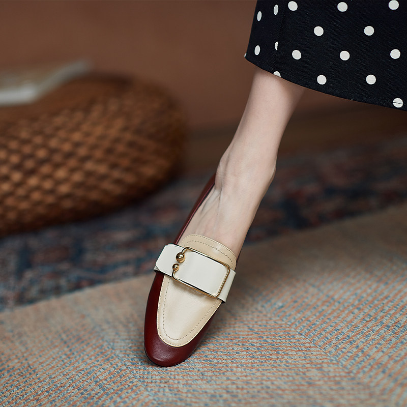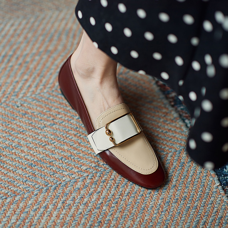 Givenivan donning not want to take off ~ metal buckle foe shoes women comfort small leather shoes square button single shoe flat bottom 1cm