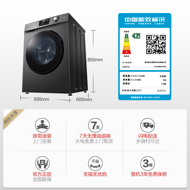 Haier Haier washing machine 10kg automatic household drum elution one-piece sterilization and mite removal MATE2S