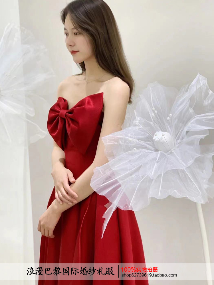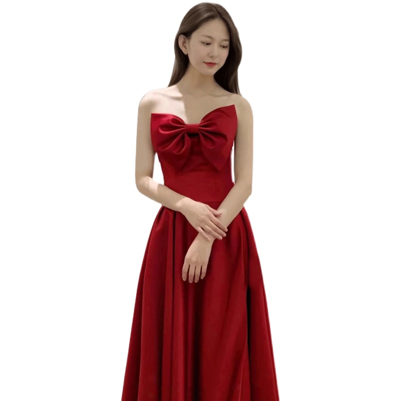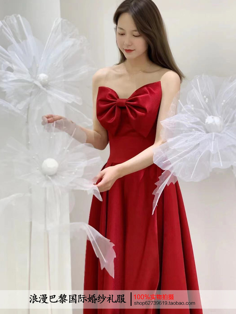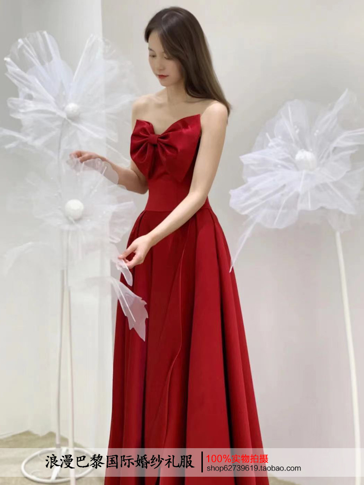 Clean red satin toast bride with breast dinner sweet engagement home to show dinner dress long dress