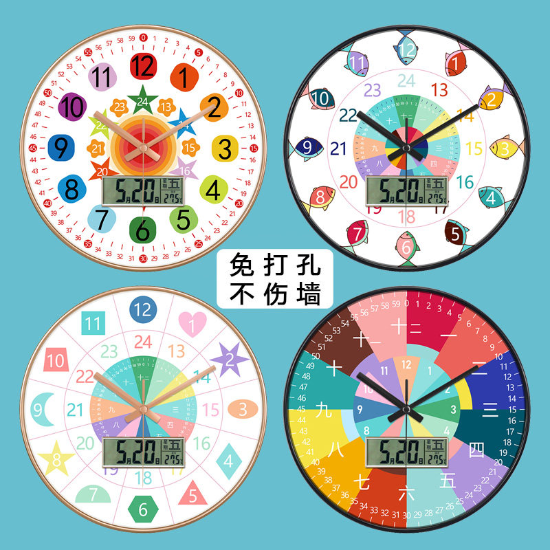 Children's room wall clock early education learning mute clock living room bedroom wall clock clock kindergarten classroom student recognition table