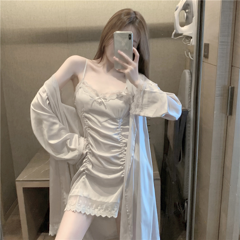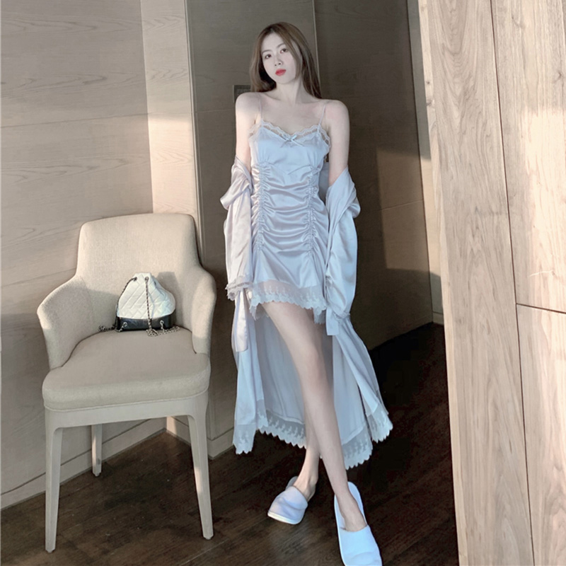 VIRRI CIAGA pajamas women's thin Spring and Autumn Silk sexy suspenders long robes can be worn outside suit