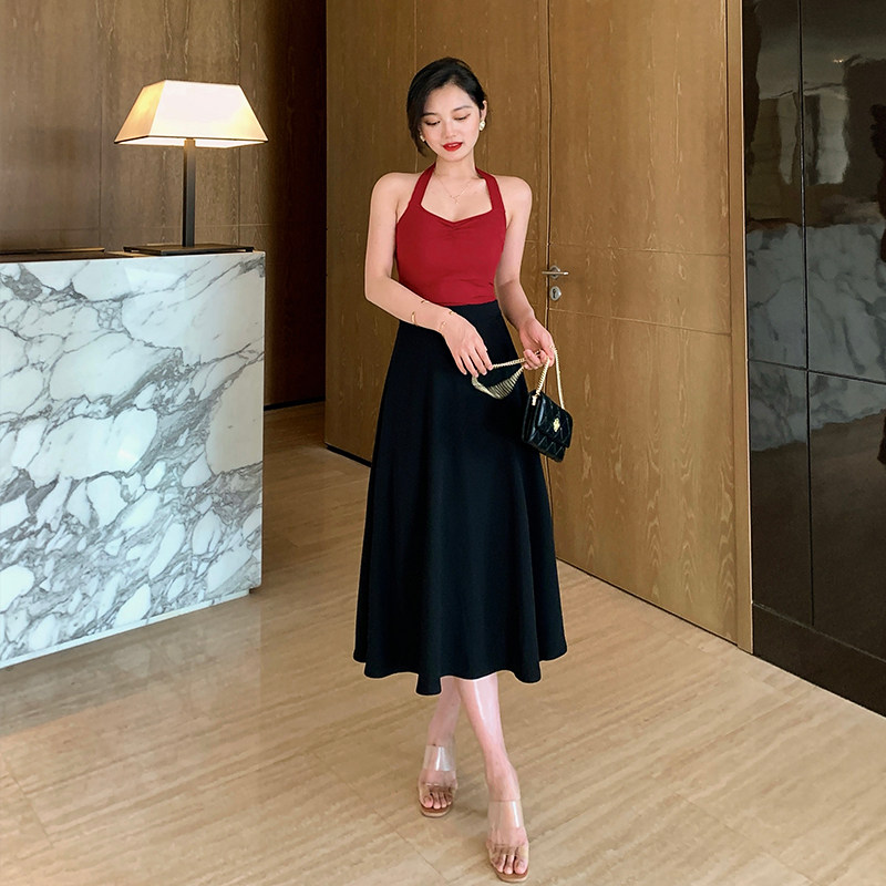 Lin Guanguan French retro high waist umbrella skirt mid-length hip bone width suitable for skirt a-line skirt skirt female summer