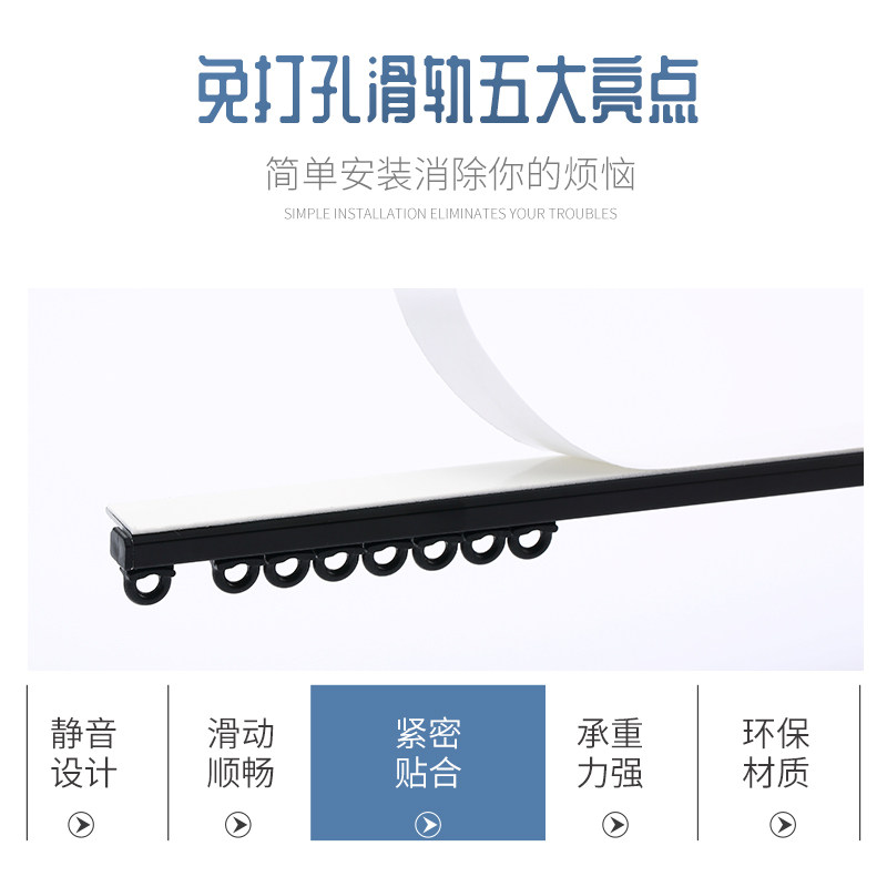 Bergao curtain track Non-punch slide Jimi slide guide rail Silent double track curtain rod adhesive track