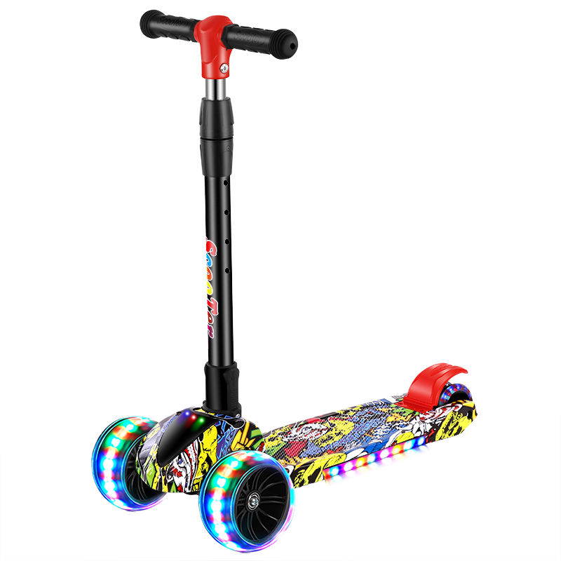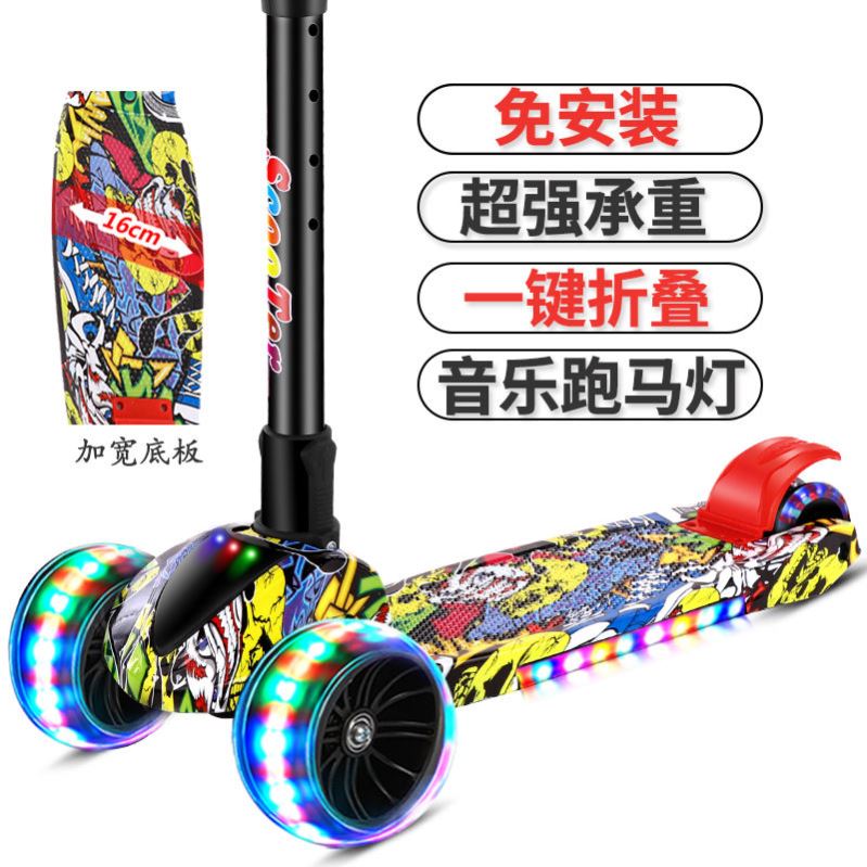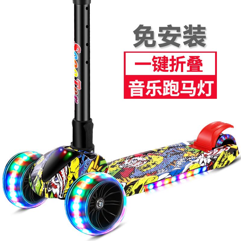 Three-wheeled scooter children's female foldable lift music flash wheel four-wheeled boy baby slippery car