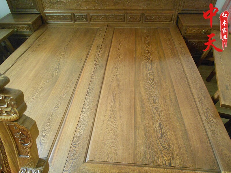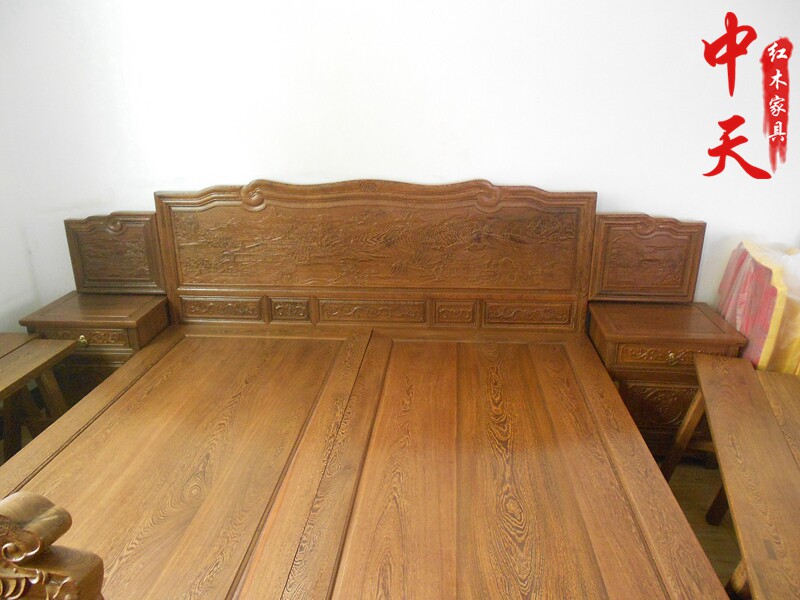 Chicken wing wood furniture mahogany double bed Chinese style solid wood classical carved landscape flowers and birds antique high and low bed sub-mother bed