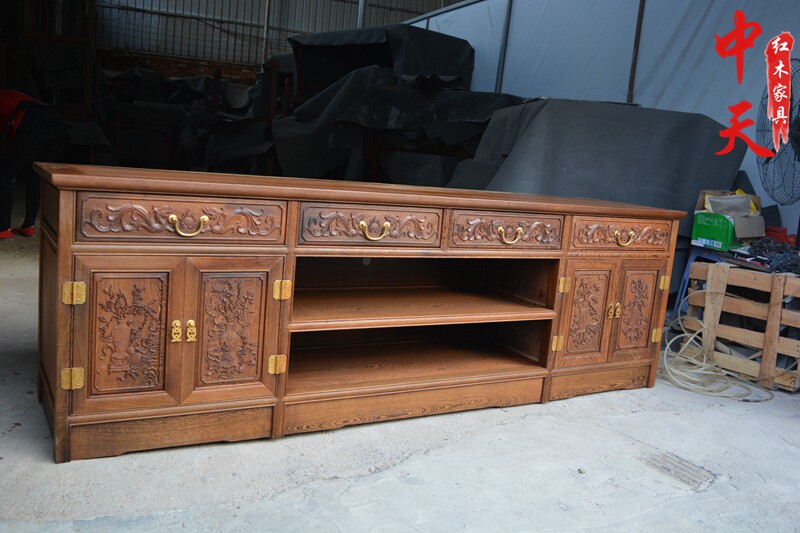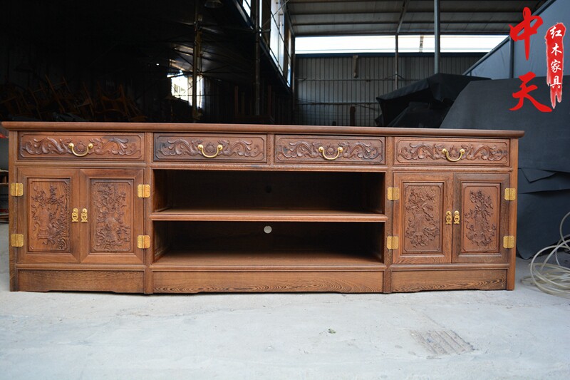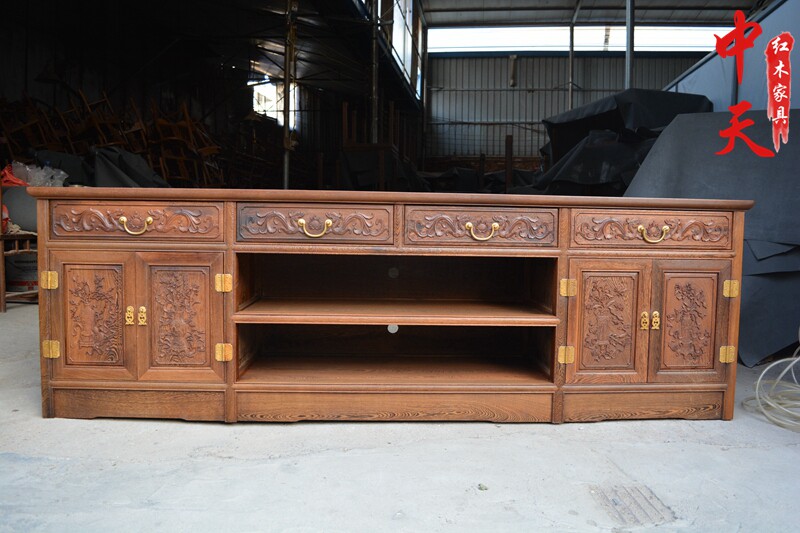 Mahogany furniture chicken wing wood TV cabinet Chinese style solid wood antique LCD TV cabinet combination simple retro neo-classical