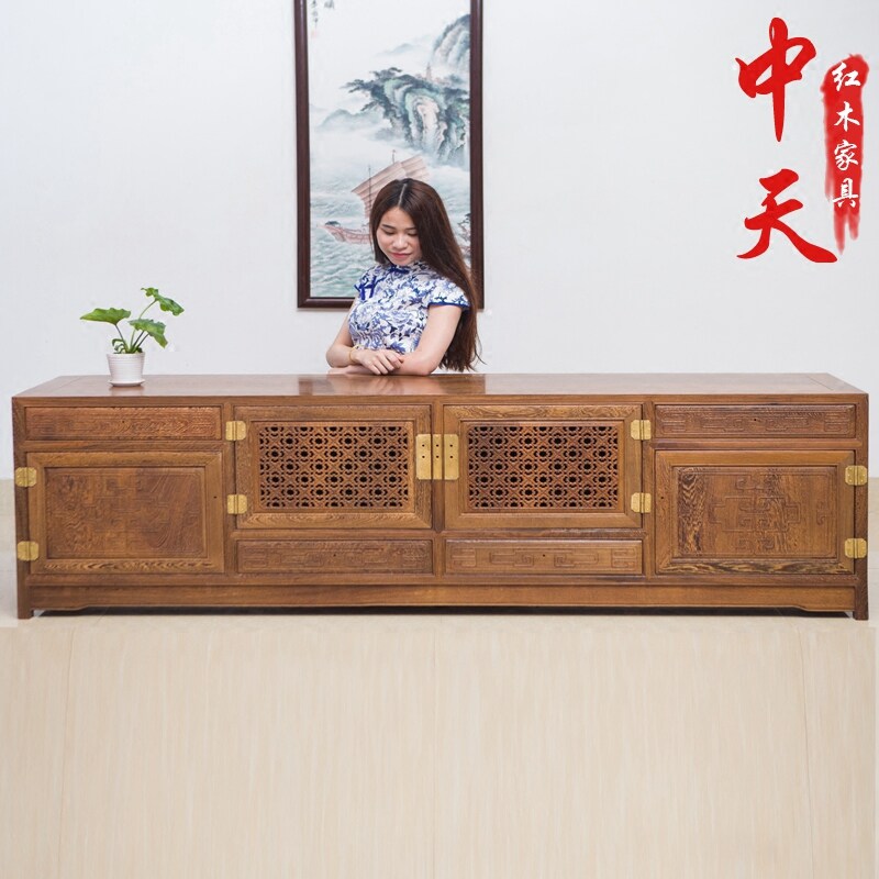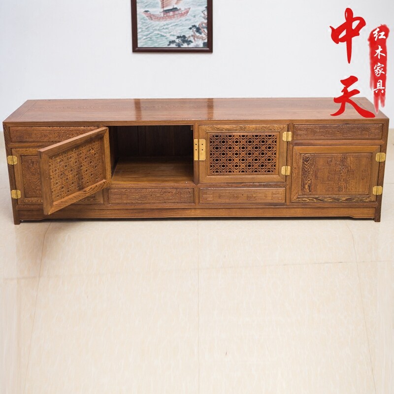Mahogany TV cabinet Chicken wing wood TV cabinet Solid wood chicken wing wood LCD TV cabinet Floor cabinet Chicken wing wood furniture