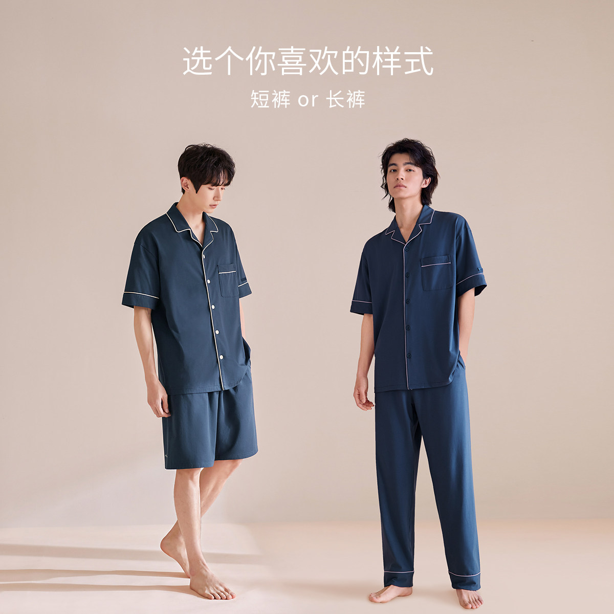 Seeping (cool type) pyjamas for men's summer 2022 new pure cotton thin short sleeves Home Shorts Suit Shorts Suit