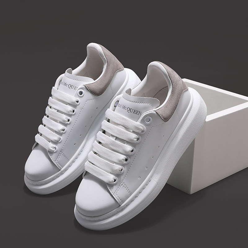 Gray velvet McQueen white shoes women's 2021 new summer sheepskin breathable skateboard shoes thick bottom to increase the trend of casual shoes