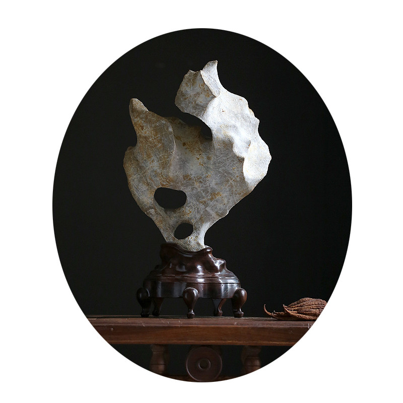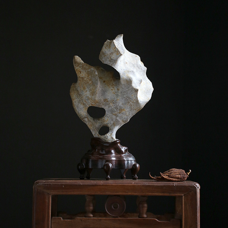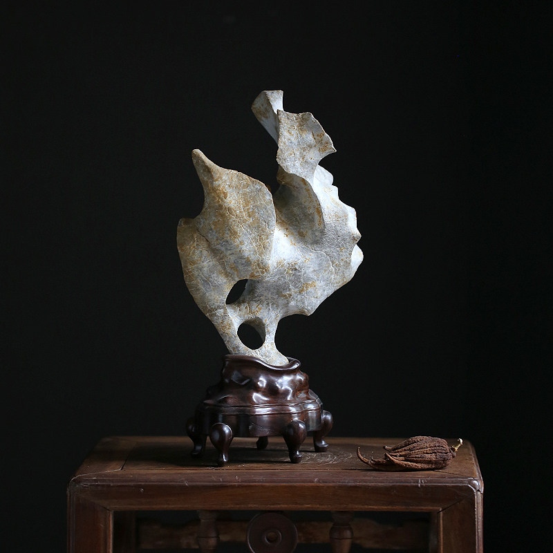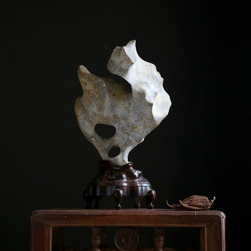 Jing Chi Qing offering elegant stone Phoenix chick Tea space study natural Taihu stone appreciation stone Su Gong ebony base