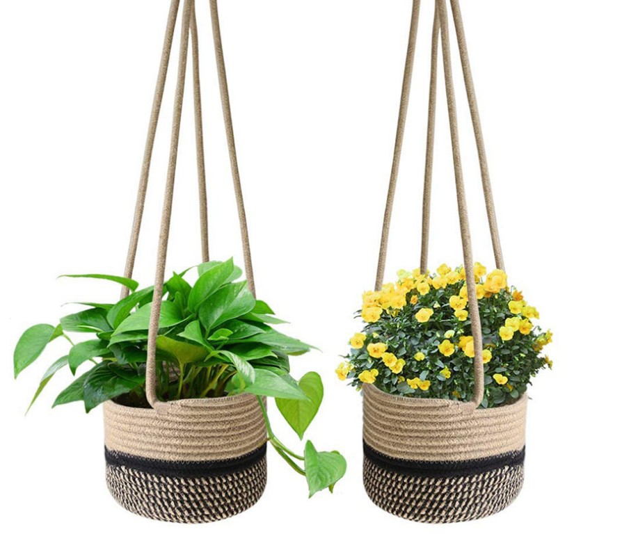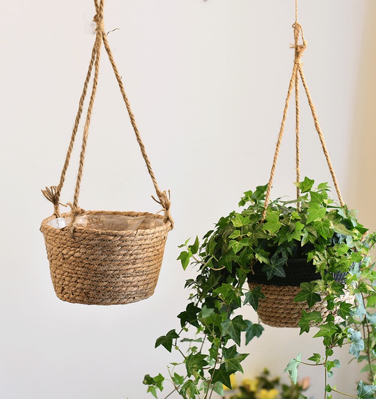Nordic ins wall cotton rope rattan grass hanging basket green plant hanging orchid hanging basket round hanging rope flower pot decoration