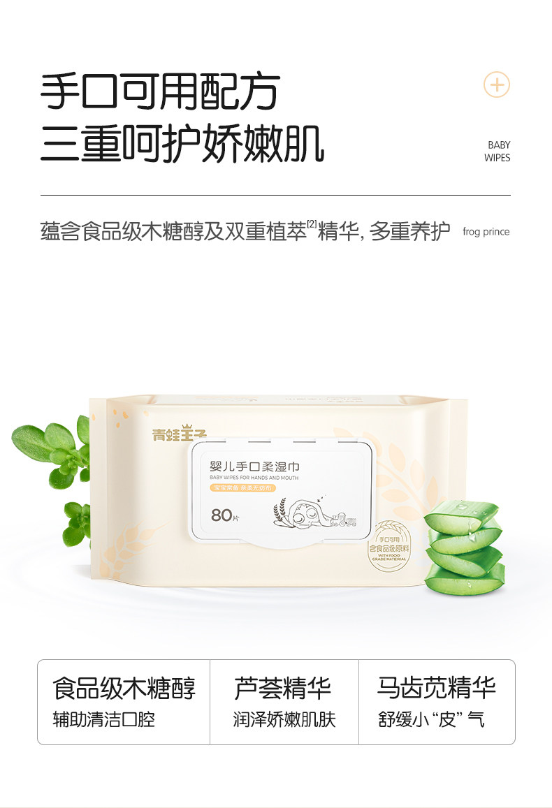 Frog Prince Baby Hand and Mouth Wet Wipes 80 Pumps * 5 Packs of Newborn Hand and Mouth Wet Wipes