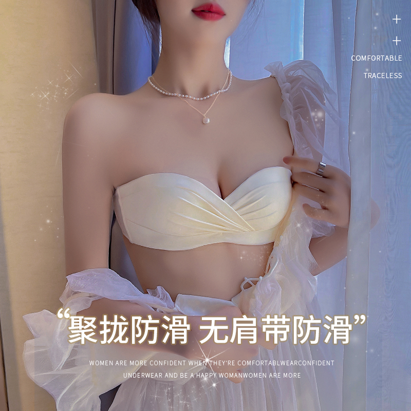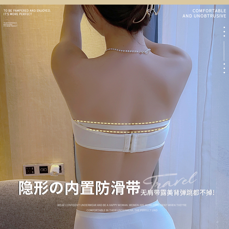 Incognito strapless bandeau underwear Women's thin summer small chest gathered non-slip bra Girl white invisible bra