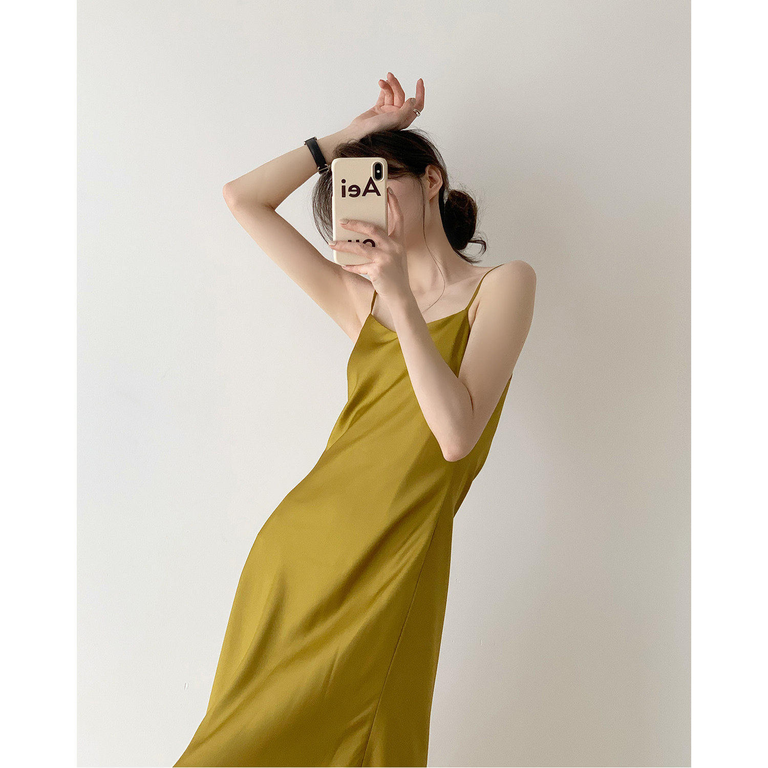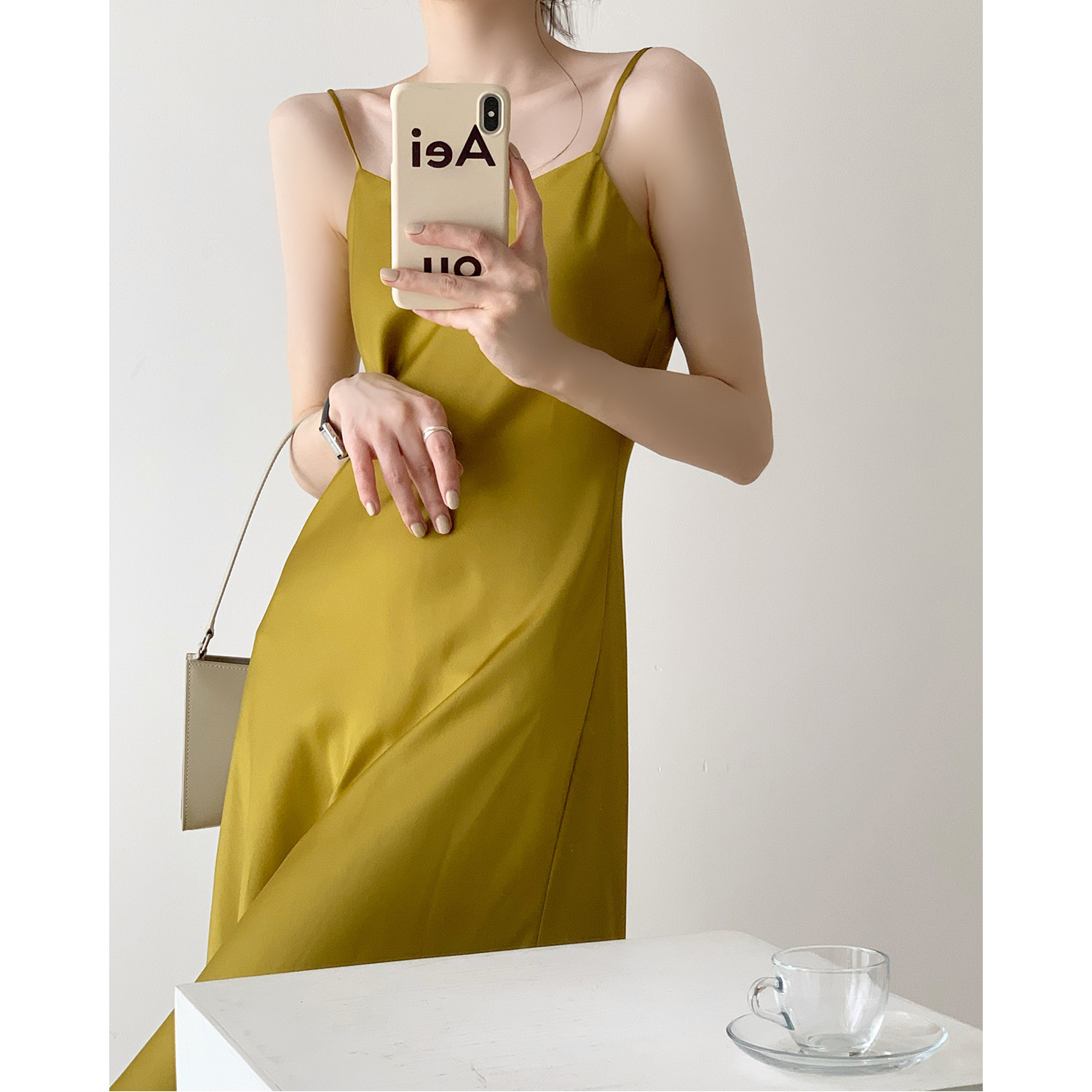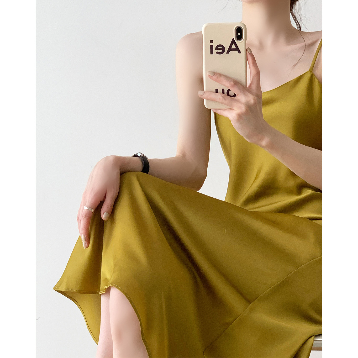 Careful machine sexy suspender skirt female French retro V-neck temperament long skirt chic satin dress spring and summer