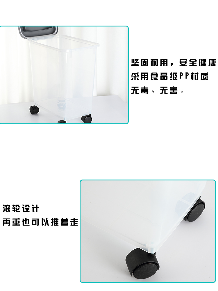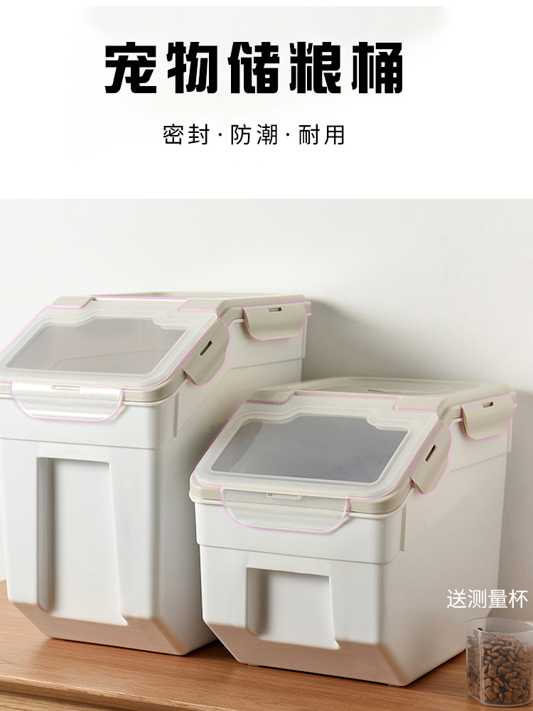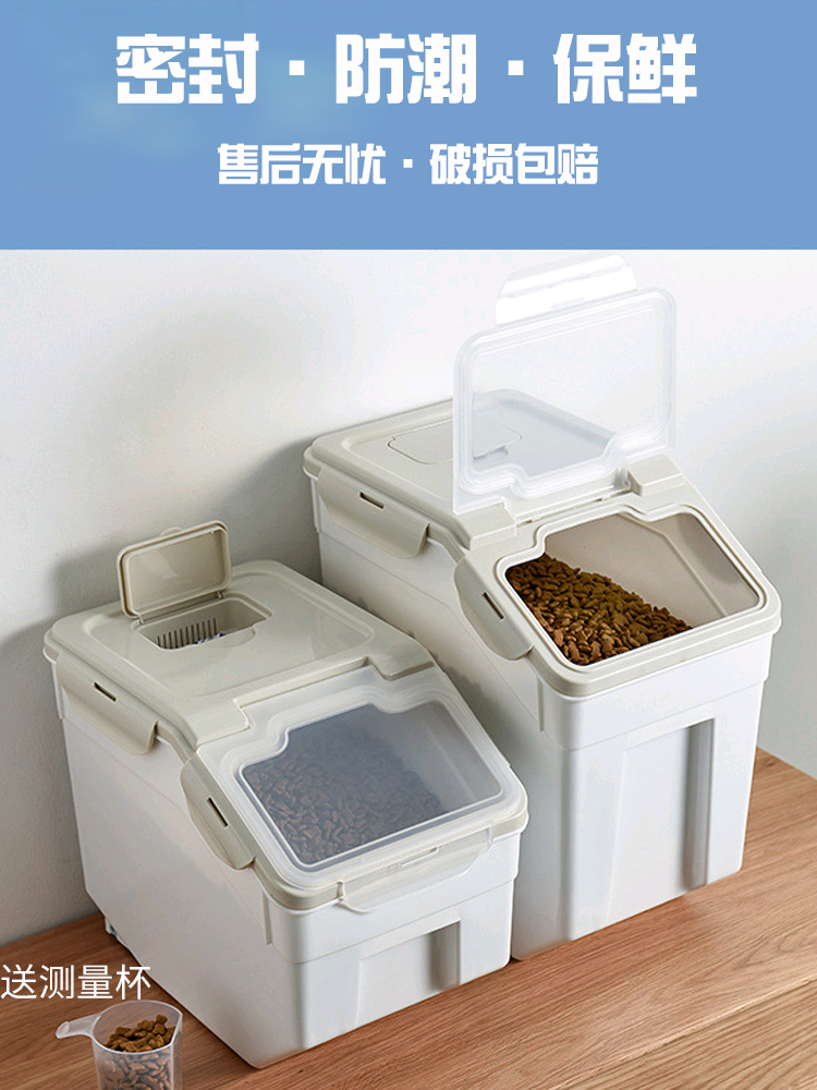 Dog food cat food sealed storage bucket 15kg pet cat food box with roller moisture-proof large capacity storage tank