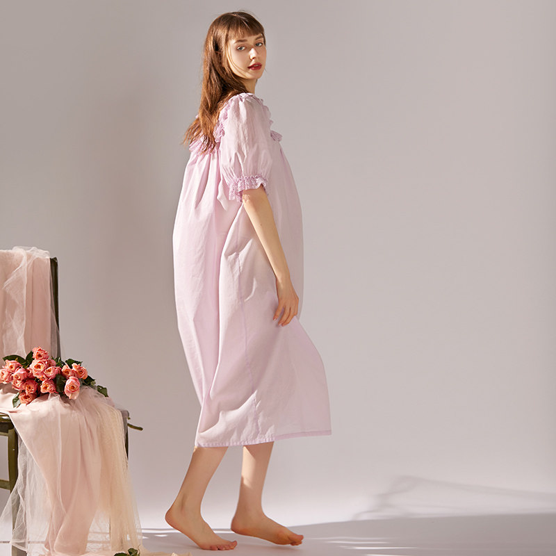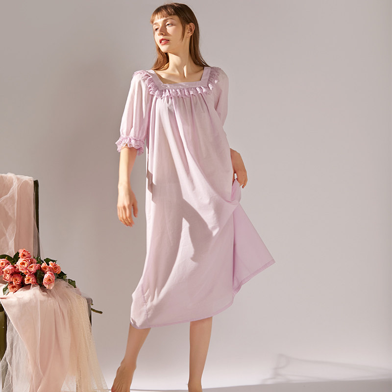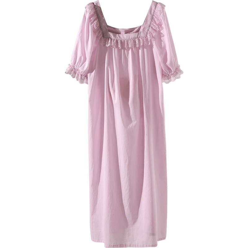 XEXZ nightdress women's 2022 new summer thin section lantern sleeves square collar lace stitching cotton palace style pajamas