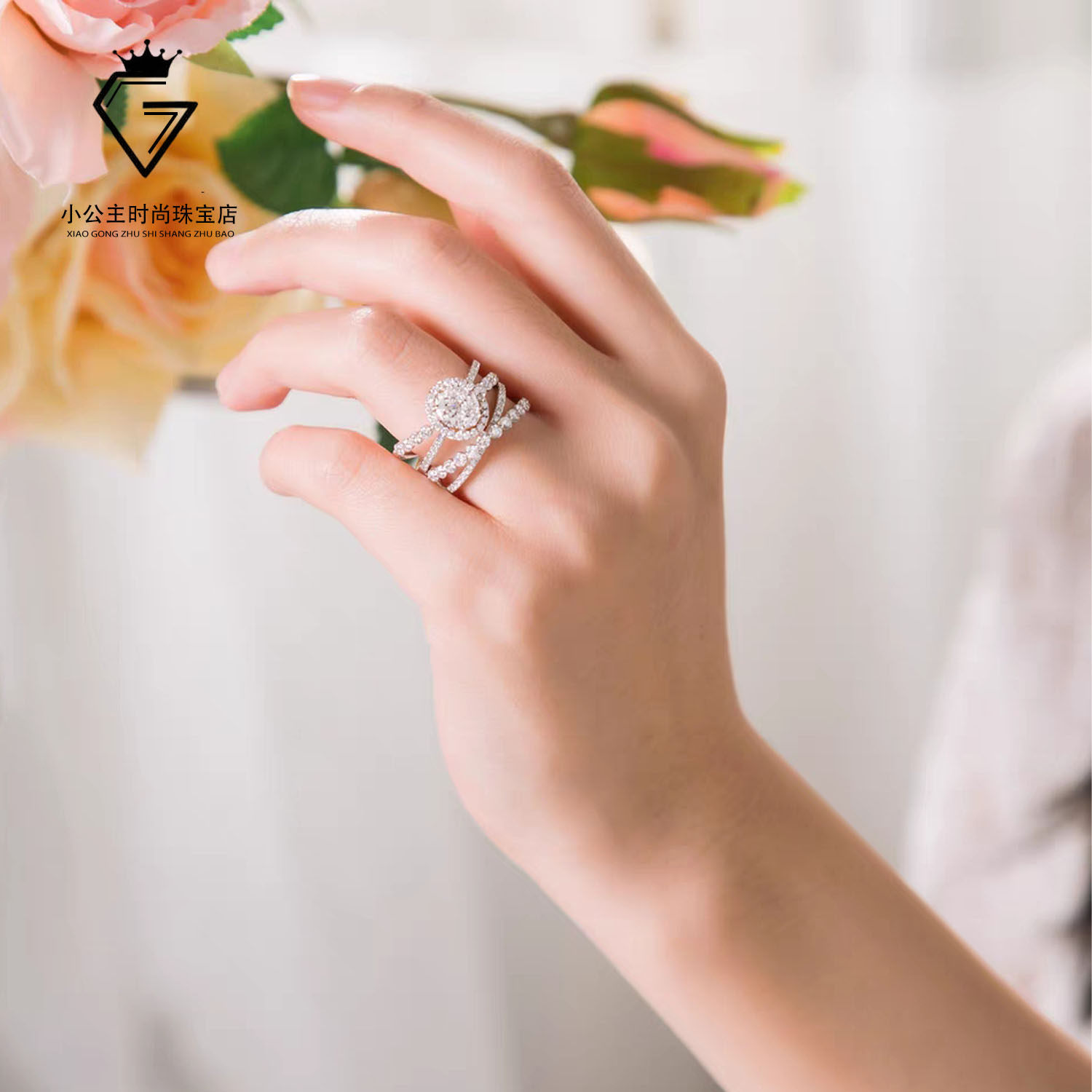 18K Platinum Import Mosanstone Ring Platoon Drill Full Drill Woman Ring 100 lap platinum inlaid ring handmade