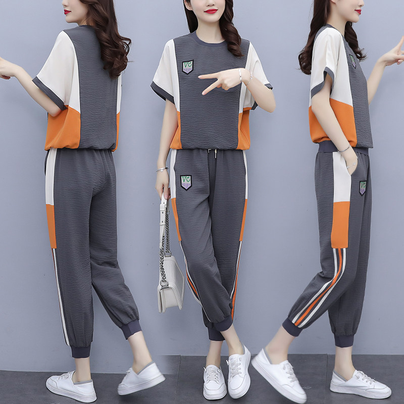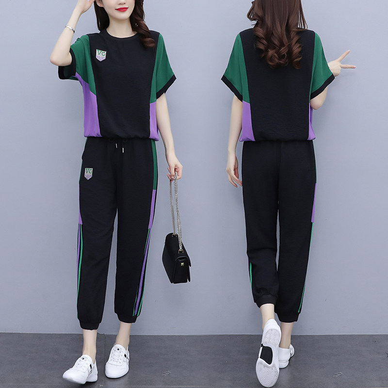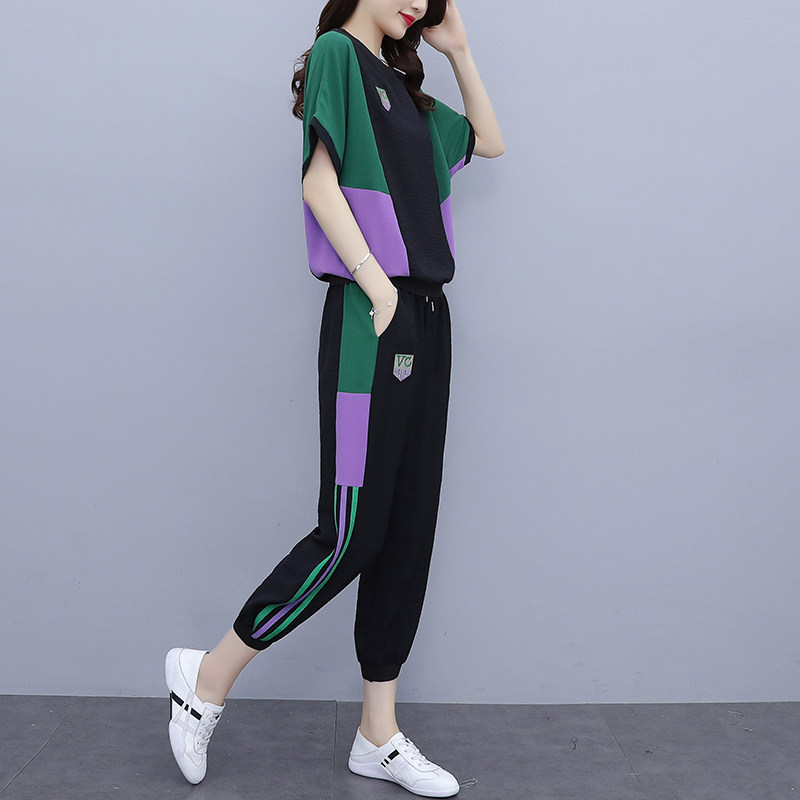 Large size women's clothing 2021 summer new trend casual fashion suit Female fat sister age reduction thin sports two-piece set