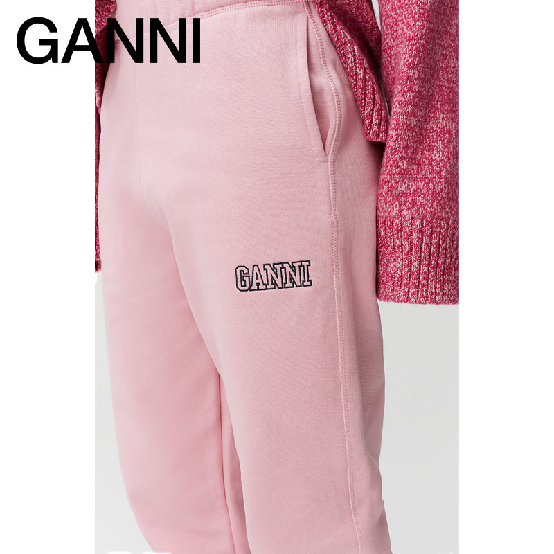 Ganni Women's New Pink Beam Feet Thin Velvet Sports Pants Loose Casual Thick Cotton Pants T2925465
