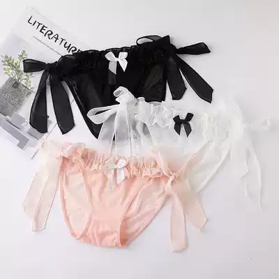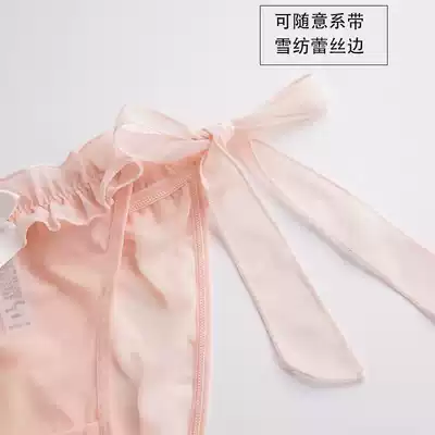 Japanese lace strap panties cross-up pseudo-Niang big U-shaped JJ set transparent mesh ruffle low waist sexy underwear