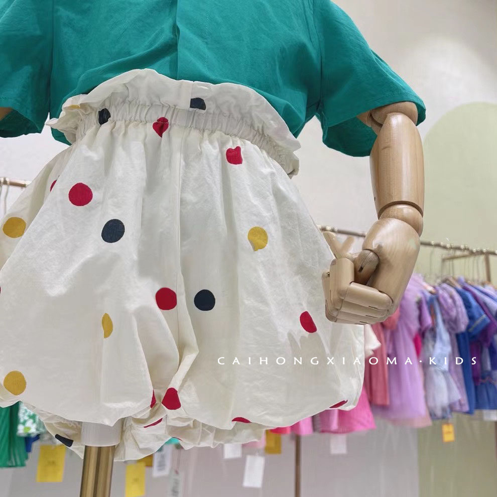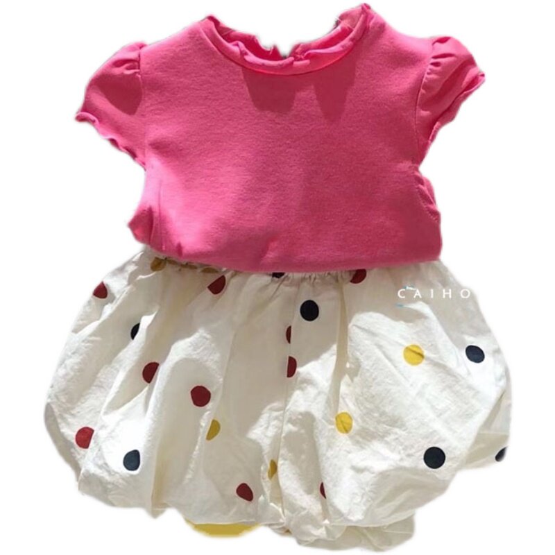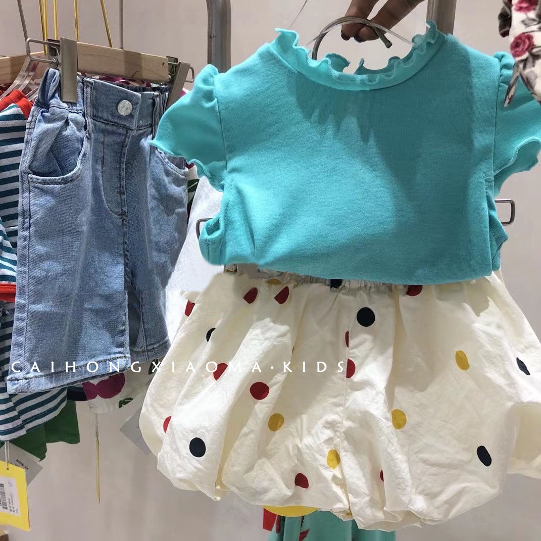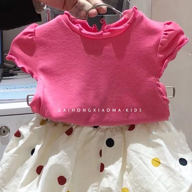 玫红色短袖蓝绿色短袖白色波点短裤玫红色袜子