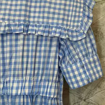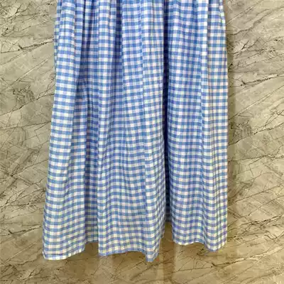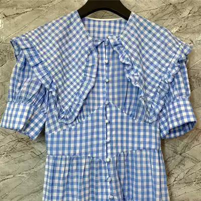 2021 summer new Hepburn style French Platycodon grandiflorum bubble sleeve plaid blue dress temperament slim long skirt