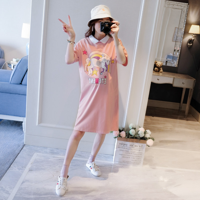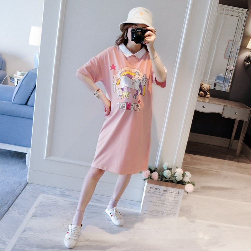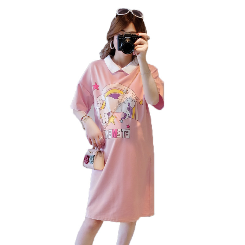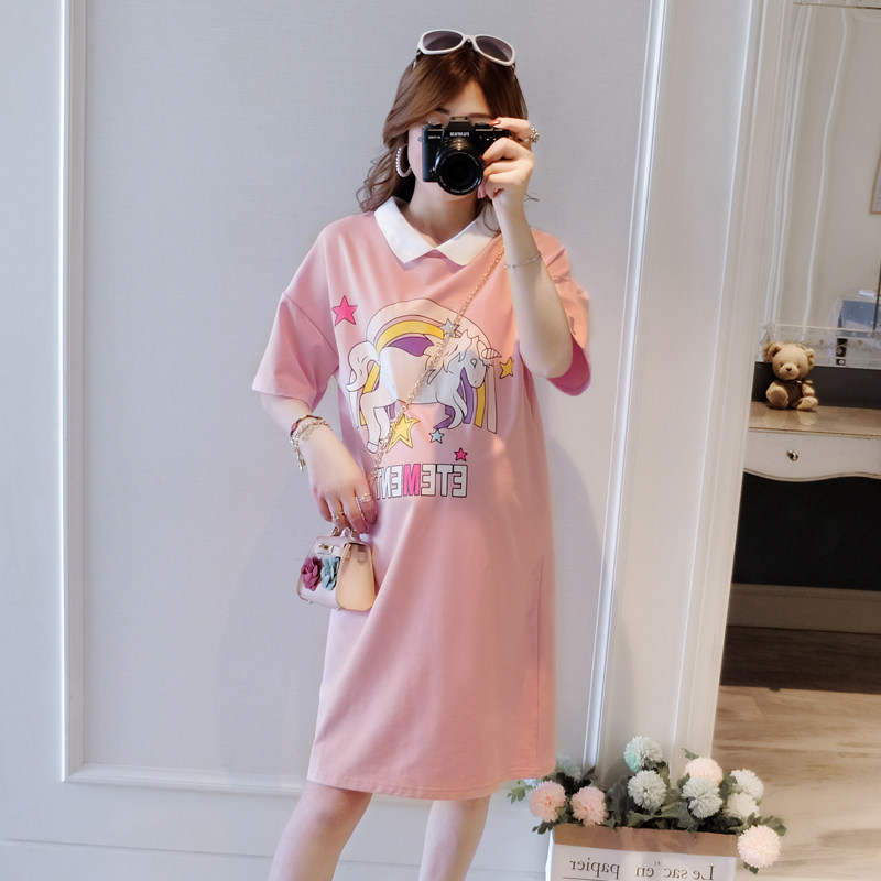 Small fresh maternity dress summer skirt mid-length Korean version loose cartoon maternity summer dress fashionable dress