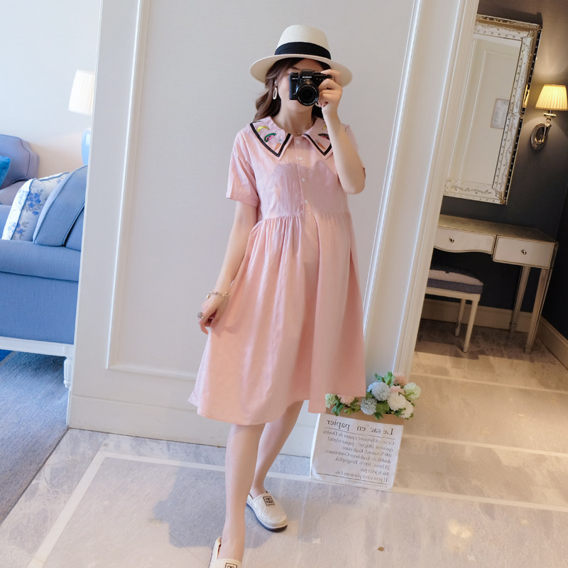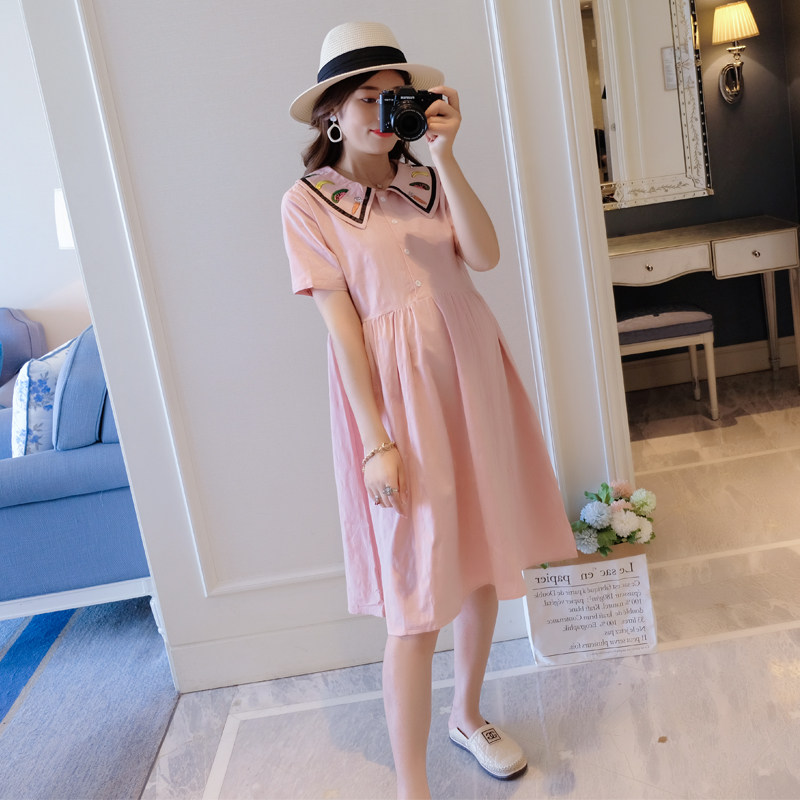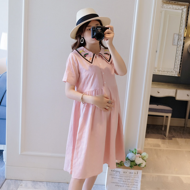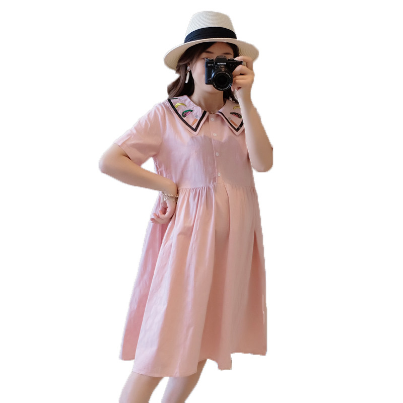 Pregnant women's skirt 2021 new style going out fashion age-reducing maternity dress summer dress cute doll collar maternity shirt