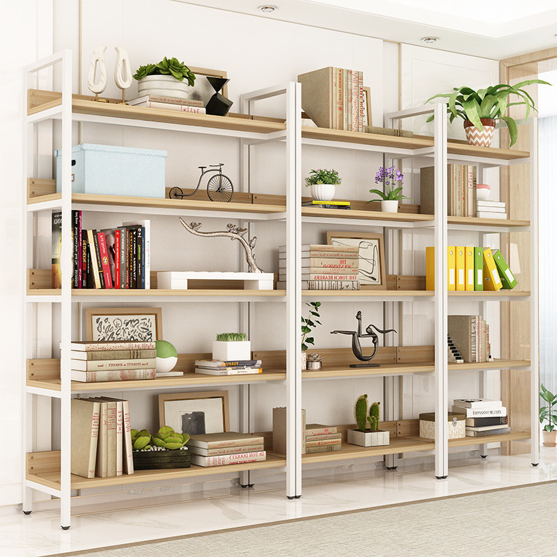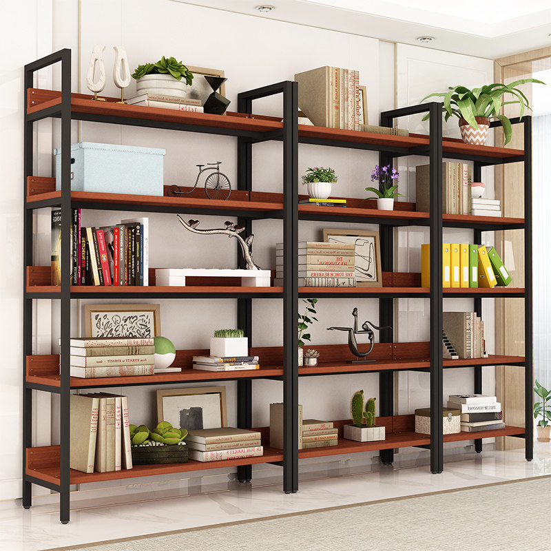 Household steel and wood bookshelf shelf Multi-layer bookcase bookcase combination storage shelf Storage cabinet shelf display stand Floor
