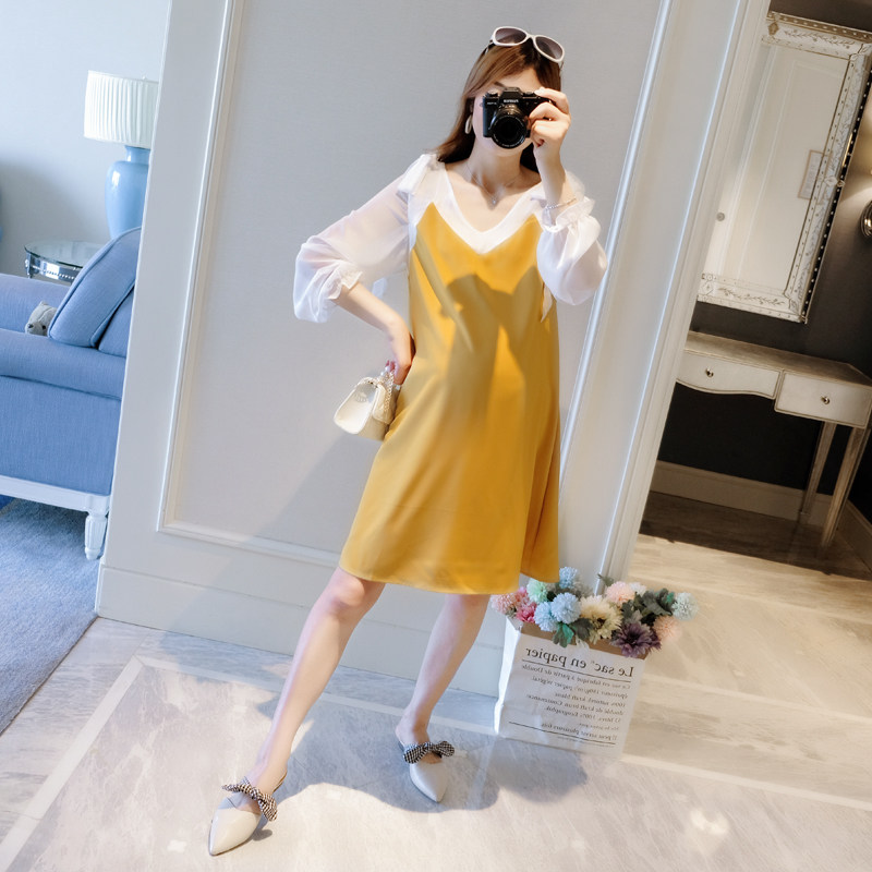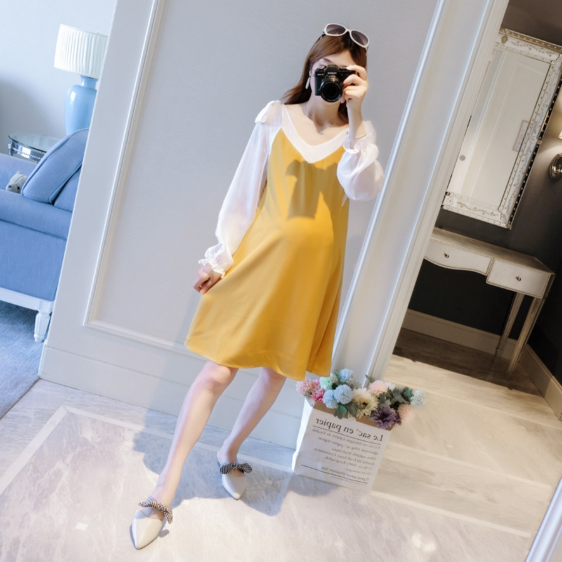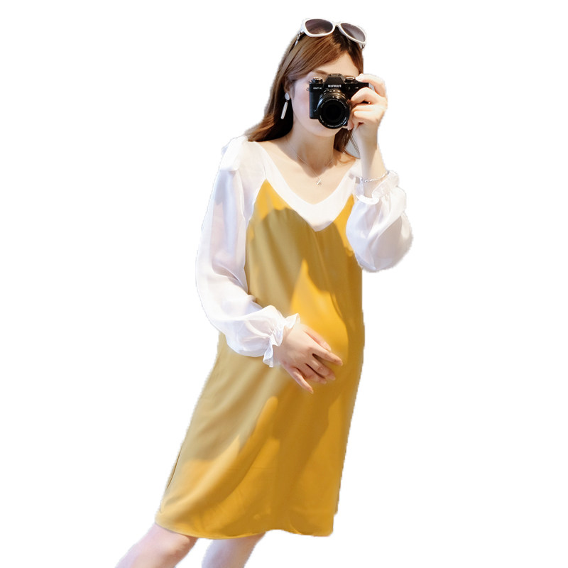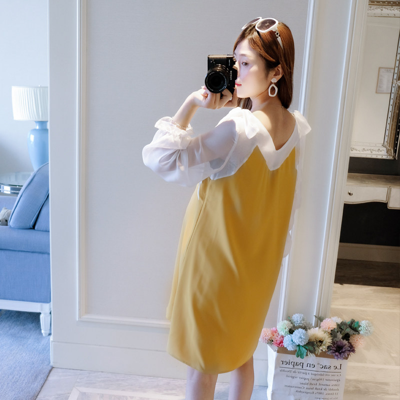 Pregnant women dress fairy fan Korean version loose v-neck summer pregnant women clothes small fresh maternity dress spring and autumn dress