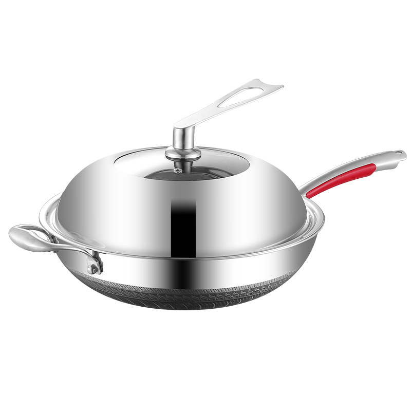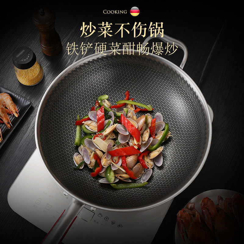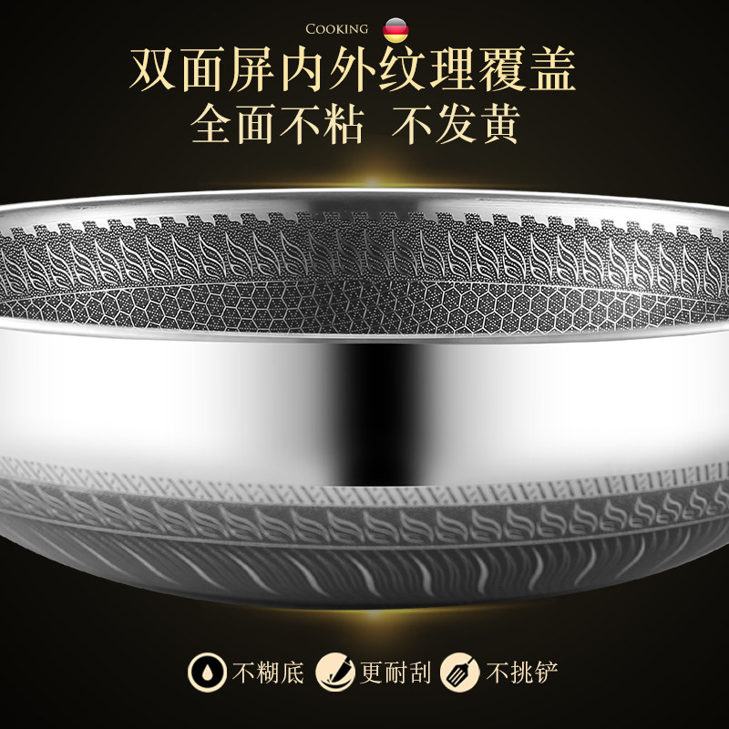 Non-Stick Pot 304 Stainless Steel Frying Pot 32 Smokeless Stir Frying Pot Anti-adhesive Multi-functional Household Induction Cooker Gas Applicable