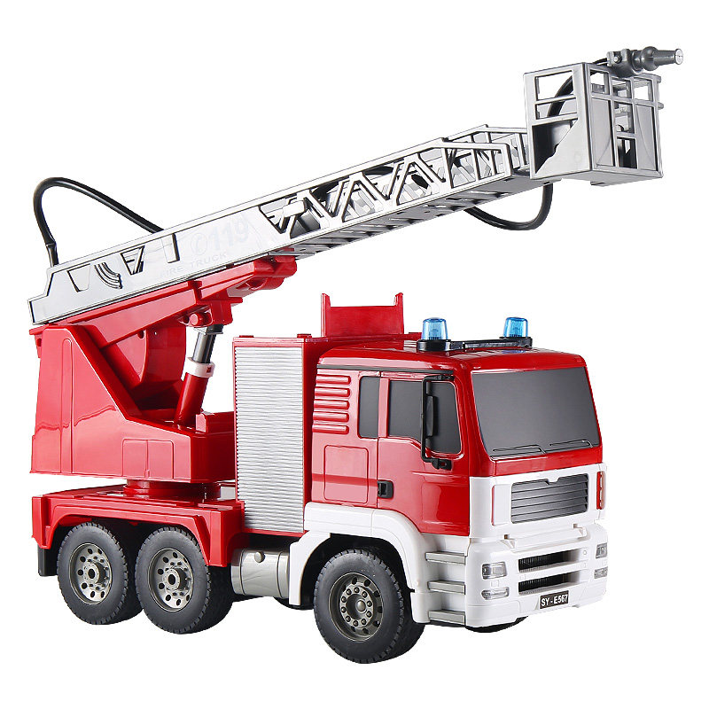 Remote control fire truck (3 rechargeable batteries stored to get 2 more) Remote control tank truck (1 rechargeable battery Stored to get 2 more) Remote control sprinkler truck (3 rechargeable batteries Stored to get 2 more)