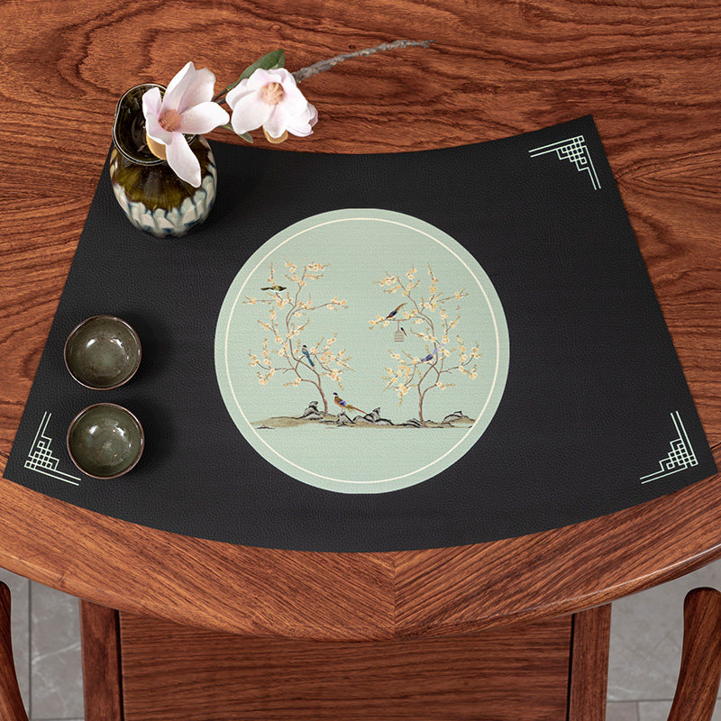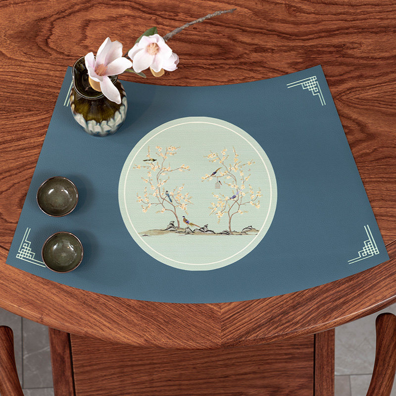 New Chinese Round Table Sector Dining Cushion Hotel Home Dish Cushion Cutlery Mat Cutlery Mat Table Cushion Silicone Leather Heat Insulation Mat