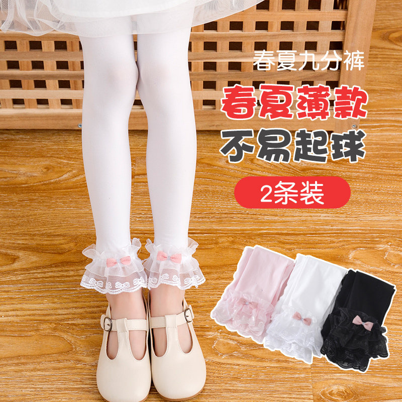 Girls' underwear, summer thin section, children's elastic pants, outer wear, foreign style nine-point pants, baby lace long pants, students