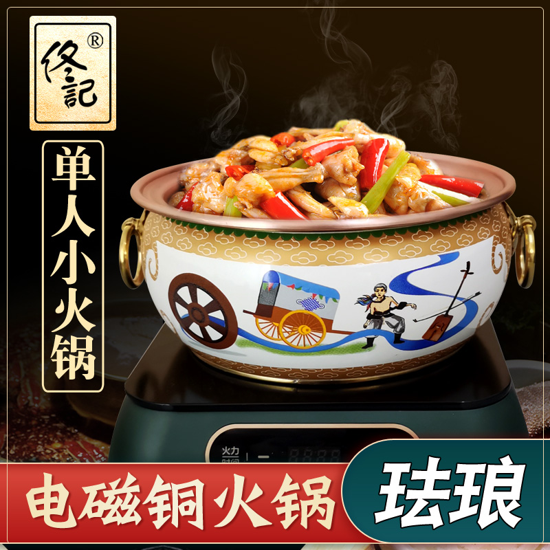 Tong Kee Jing Tai Blue Copper Hot Pot One Person One Pot Single Home Commercial Small Induction Cookware Small Copper Pan Old Pure Copper