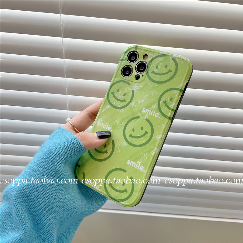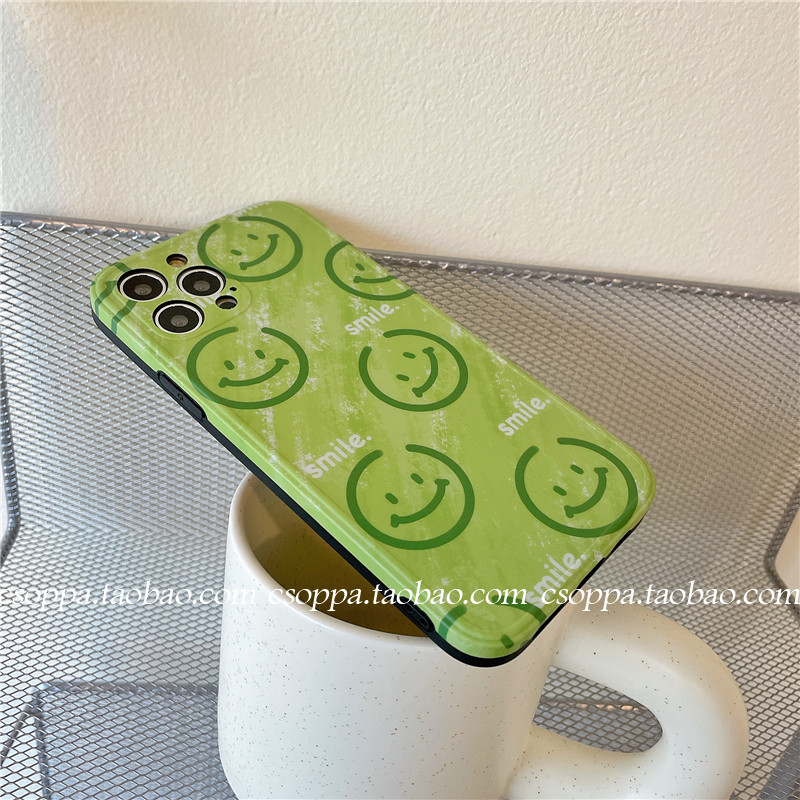 Refresh green smile faces for iPhone 13 12 pro max Apple 11 phone case x xs minimal 8p soft xr