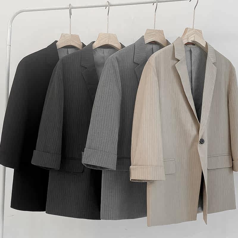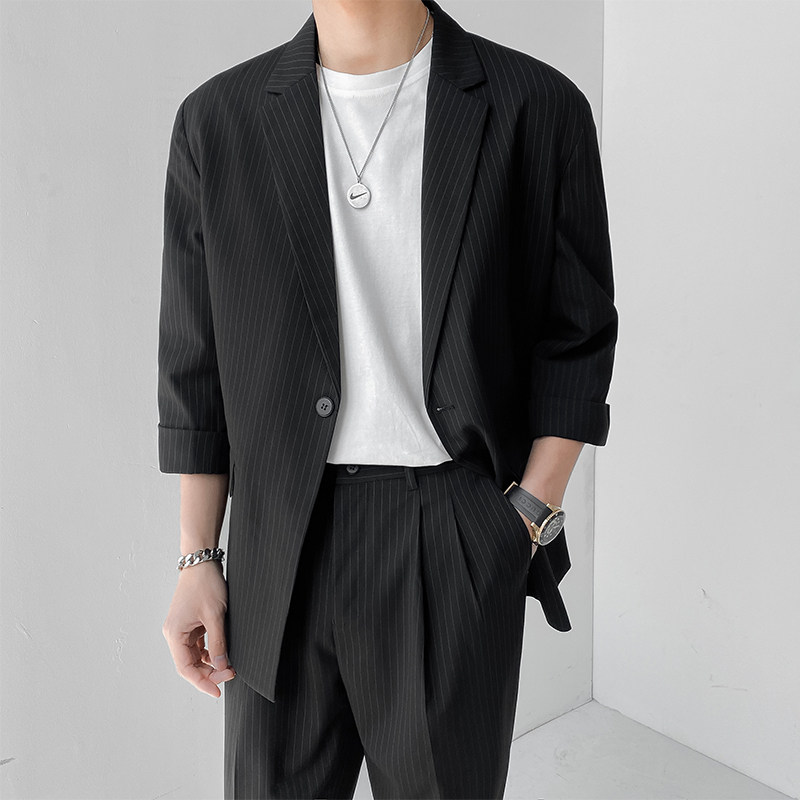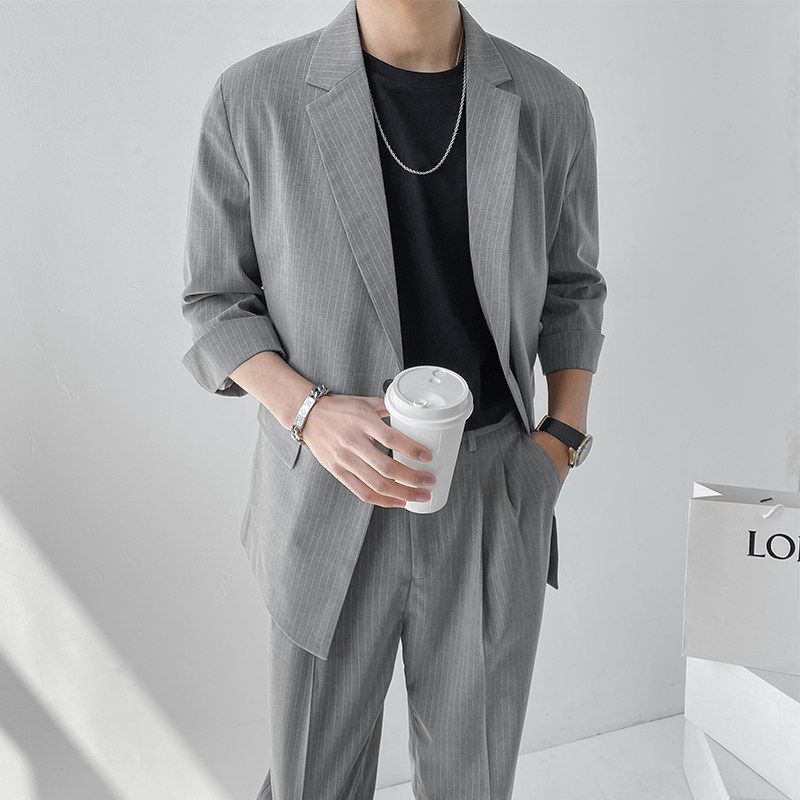 Light Cooked Wind 70% Sleeves Striped Suit Men's Summer Advanced Pendant Sensations Slim Suit Casual Yuppie Handsome Suit