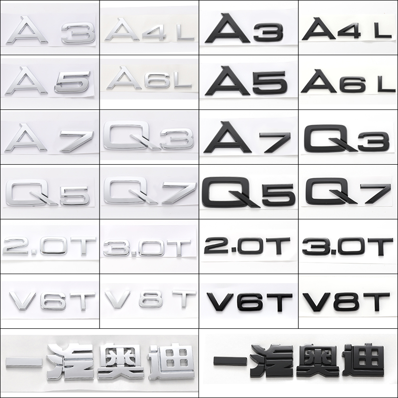 Audi Displacement Car Mark A4LA3A5A6LQ2Q3Q5L Four-wheel Drive Midnet Tail Mark Side Mark Black Quadring Digital Retrofit