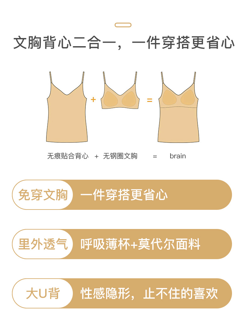 Beauty back harness vest woman Modale free of marks Summer with chest cushion one-piece bottom outside wearing blouse wrapped in chest thin