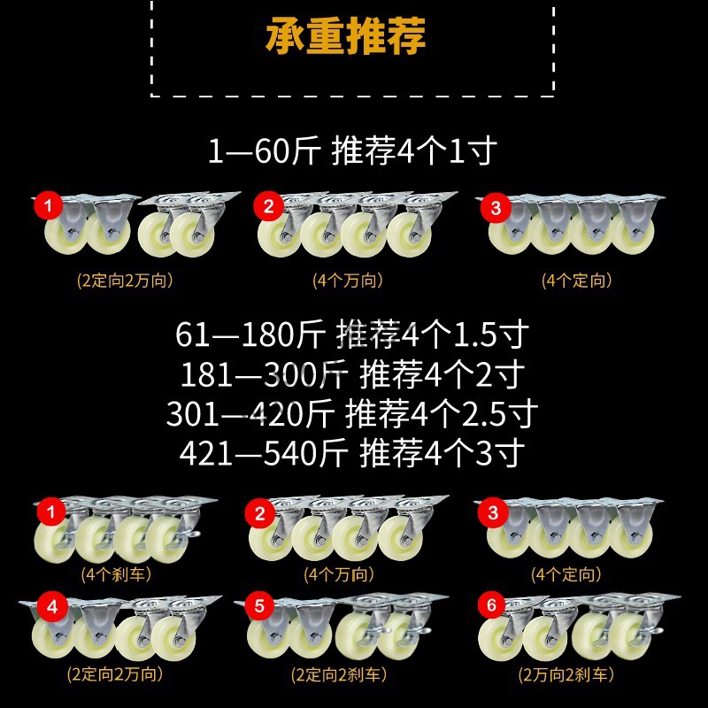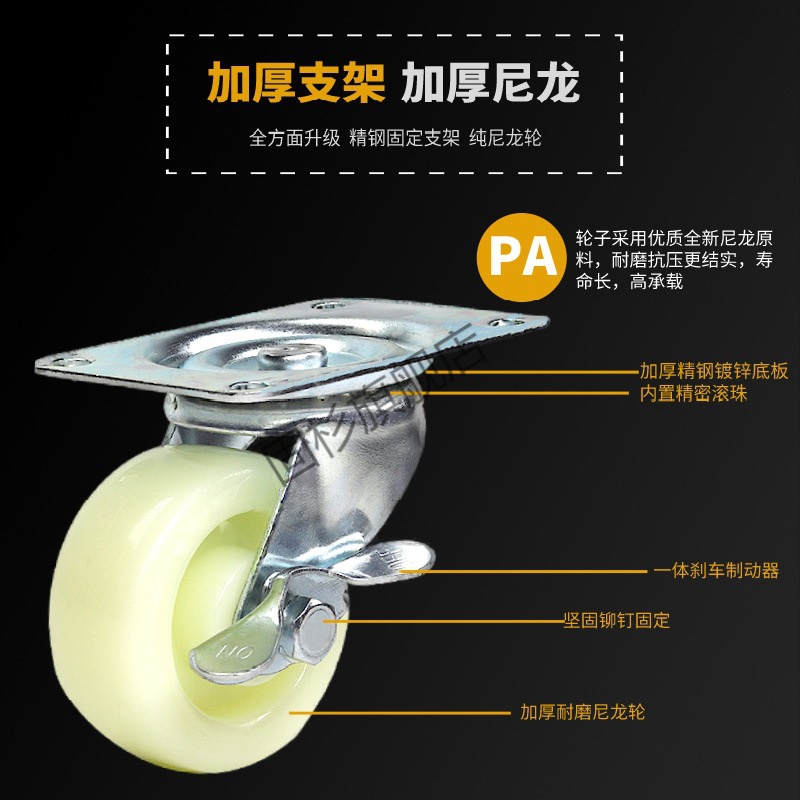 1-1 5-2-2 5-3 inch fat boy nylon wheel caster load-bearing brake wheel trolley wheel pulley