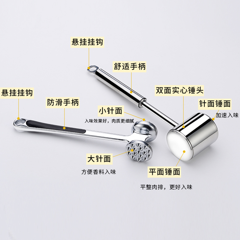Pine Meat Hammer 304 Stainless Steel Kitchen Home Beat Steak hammer Hammer Tender Meat Break Gluten Instrumental for commercial knockout theorizer