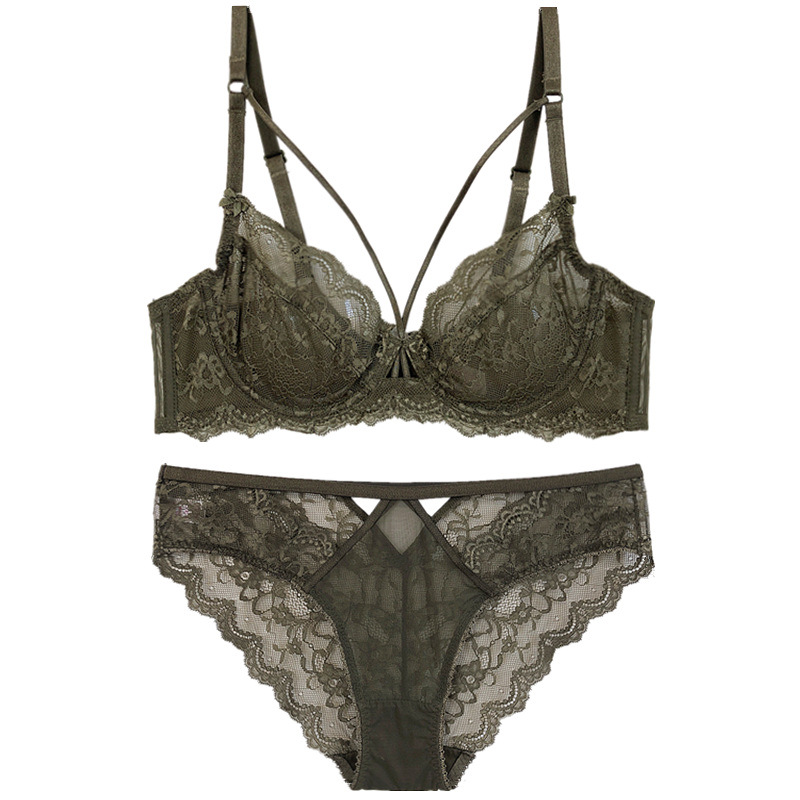 Underwear women's summer thin section breathable big breasts show small sexy lace upper support to prevent sagging breasts gather bra set
