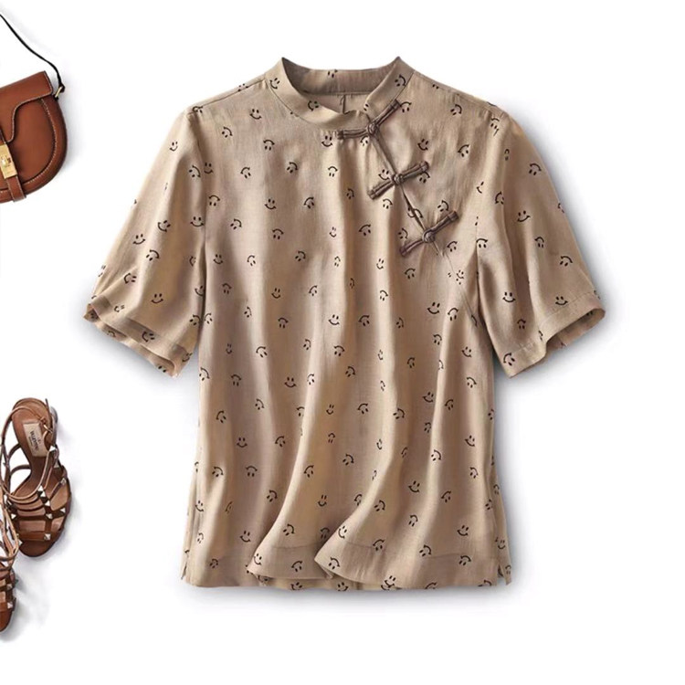 Mijia Good Quality Jun Xiujiang South Daughter New Chinese Improved Qipao Blouse Blouse Fugu Short Sleeve Shirt