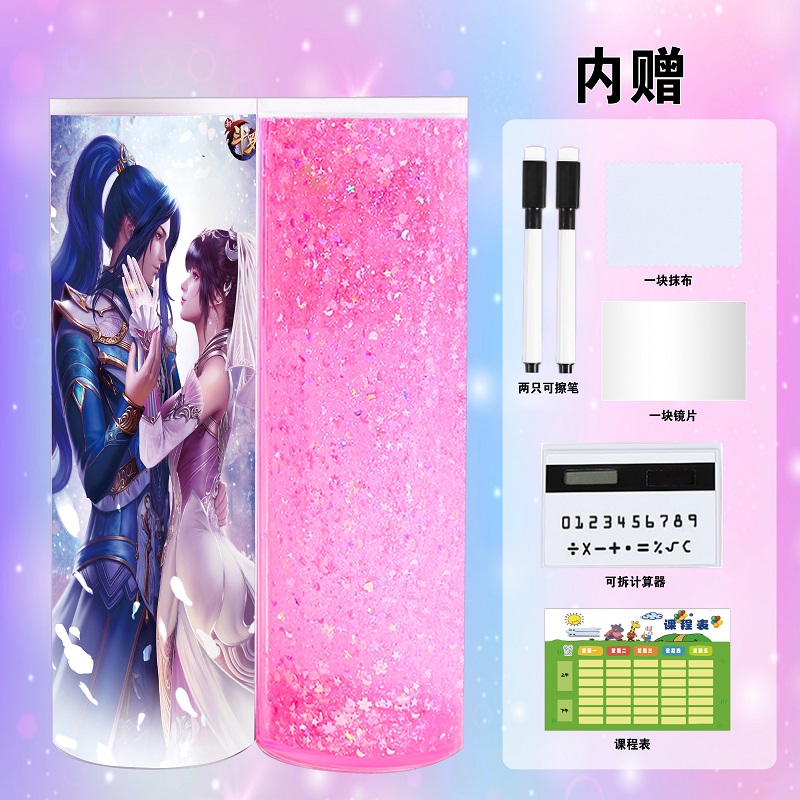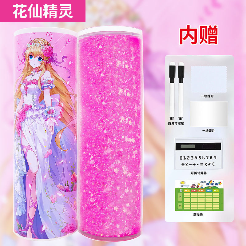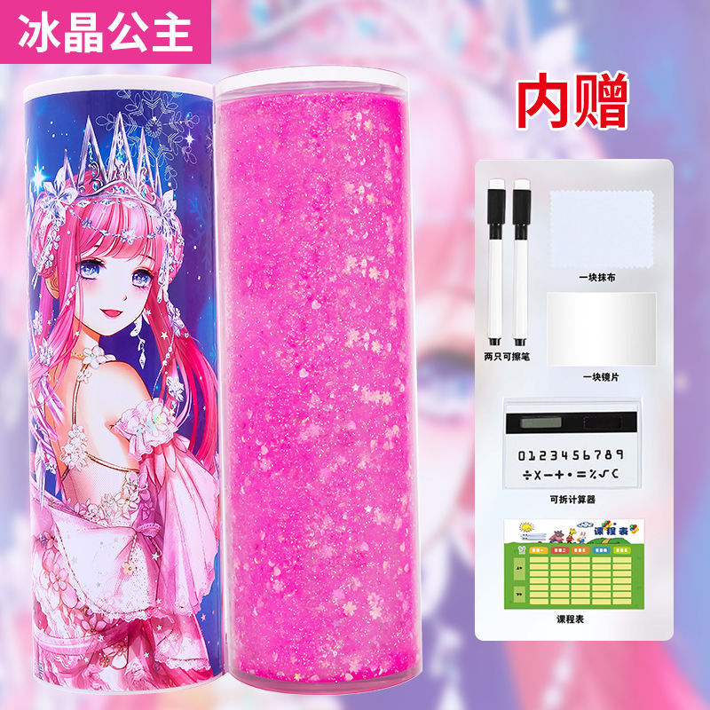 Small Dance Pink Flow Sand Pencil Case Net Red Homo-Style Cartoon Elementary School Children Cylindrical Children Gift Dreamy Lead Pencil Case