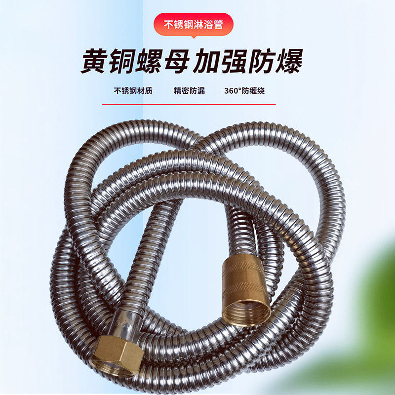 Copper head shower shower head hose bathroom bath water pipe shower stainless steel explosion-proof pipe universal accessories four points