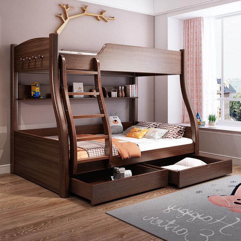 Solid wood bunk bed two-story bunk bed adult with upper and lower bunk home children's bed high and low bed small apartment space-saving